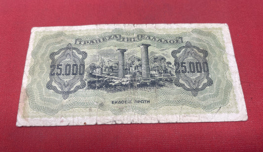 Bank of Greece. Axis occupation 25.000 Drachmai Banknote Serial -EA8811101