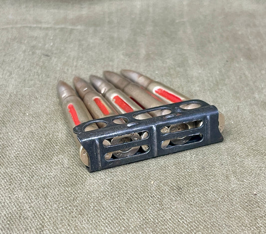 5 x 6.5x55 Swedish INERT Cartridges in Original Mauser Stripper Clip – Collectible Display Ammunition