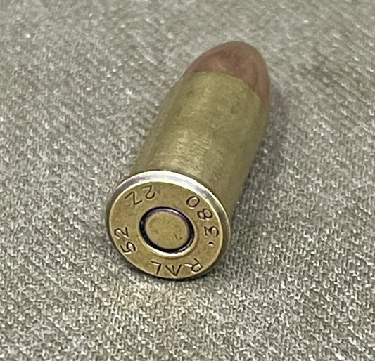 Original INERT British .380 Webley Round — 1962 RG Radway Green Brass Cartridge