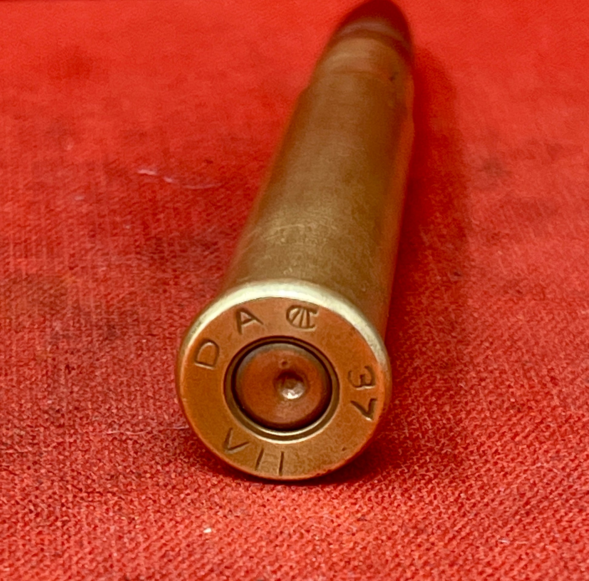 This is an inert .303 British cartridge, manufactured in 1937 by DA – Dominion Arsenal, Quebec, Canada. Fully deactivated and UK‑legal, it is completely safe for handling and display. The 1937 date places it in the pre-World War II period, making it an interesting historical collectible. Each round features the characteristic DA headstamp, clearly identifying its Canadian manufacture. Ideal for collectors of Commonwealth ammunition, historians, or anyone building a reference display of British service cartridges, this inert round provides an authentic example of interwar .303 British military ammunition.